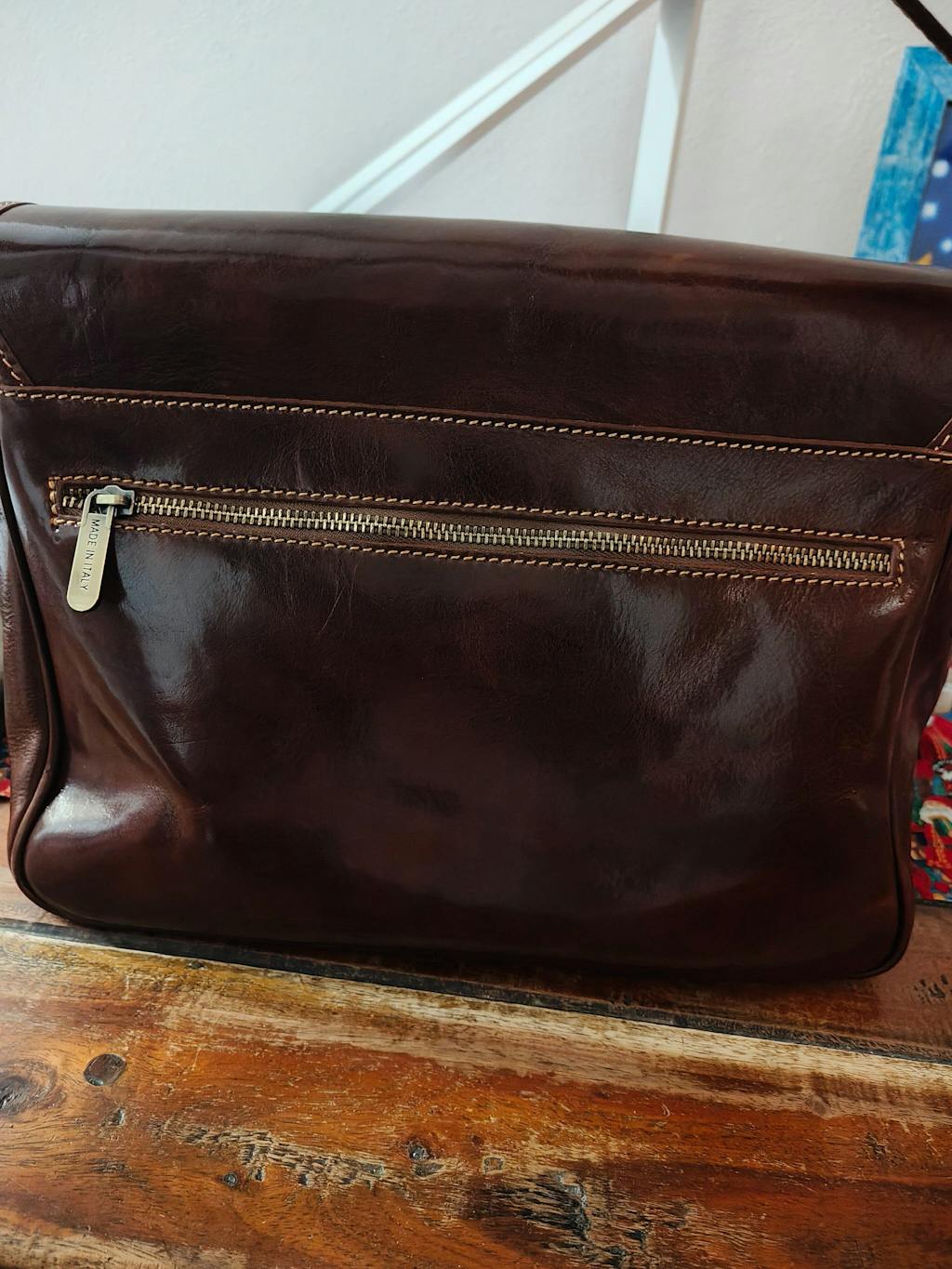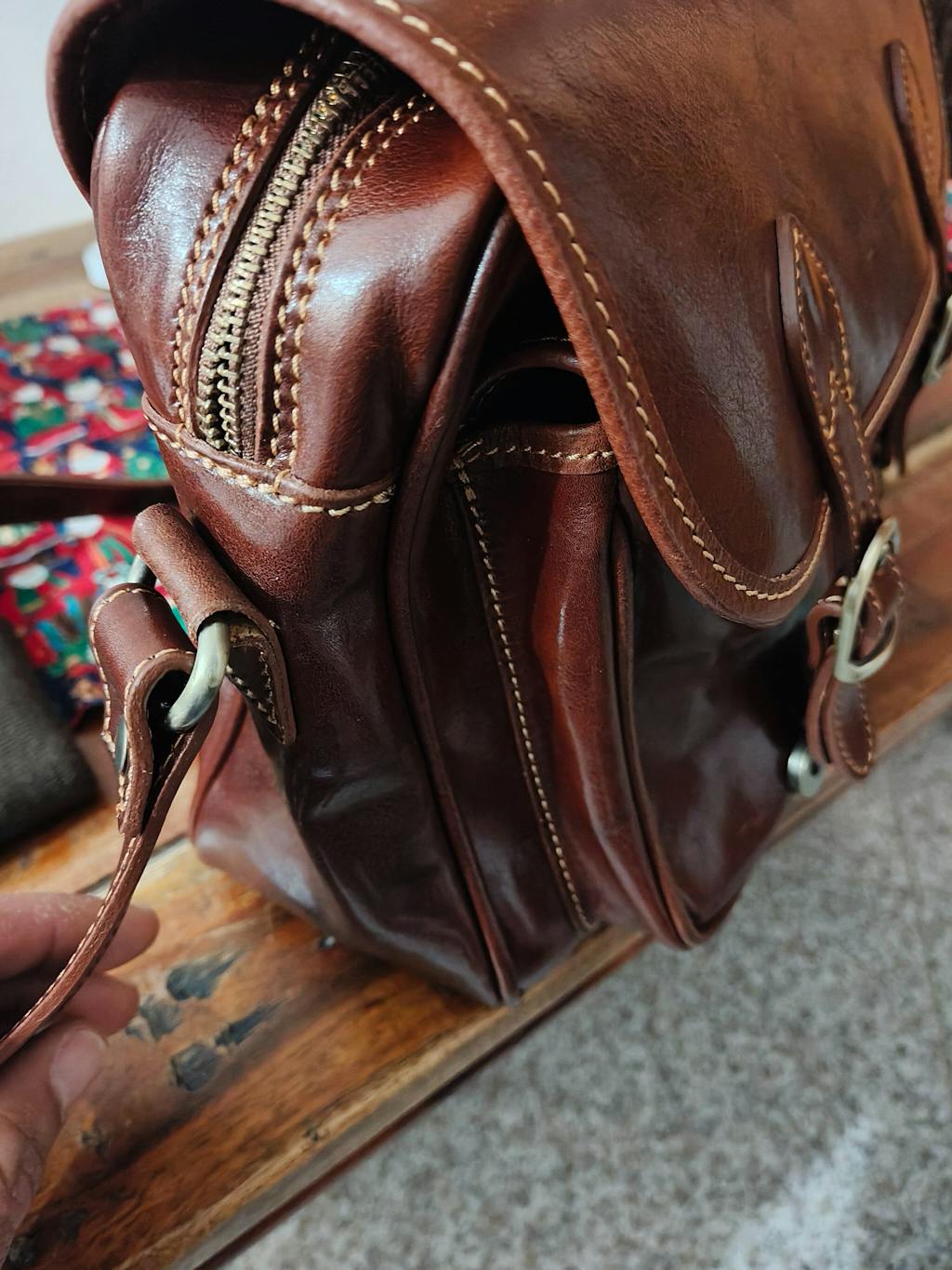 Borsa di pelle color cuoio molto bella. Ben cucita sia all'interno che all'esterno.